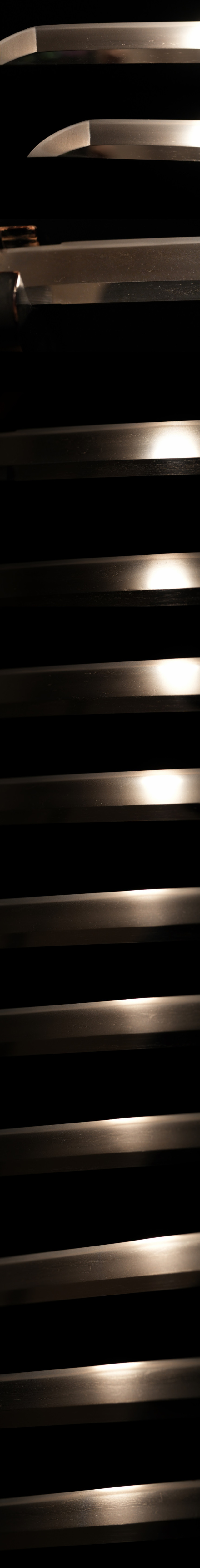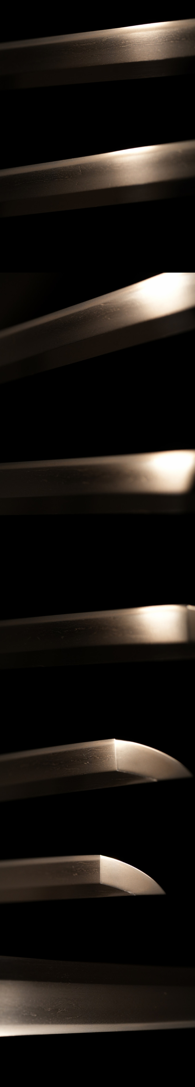 後醍醐天皇に献上するような元々の上品な公家太刀で健全かつ、ほかに類がほとんどない在銘の雲生です。小板目肌が細かく詰んだ精美な鍛えに地沸微塵に厚くつき、地映りが現れ刃文は直刃に小足・葉よく入り、匂口締まりごころに小沸がつくなど見事な出来映えを示した一振りです。