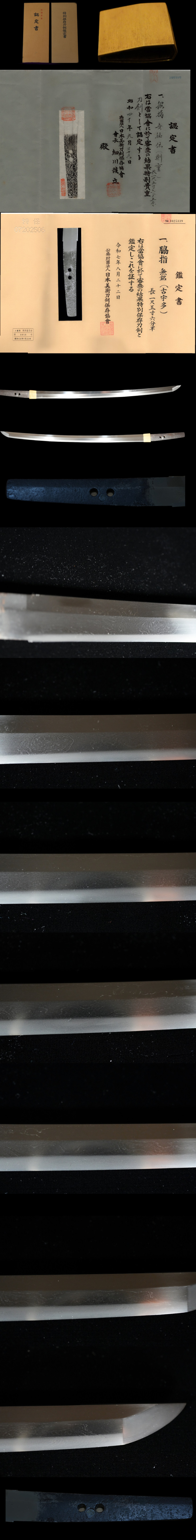 近年の特別保存刀剣鑑定書にて古宇多(鎌倉後期の名工一派)と極められ、