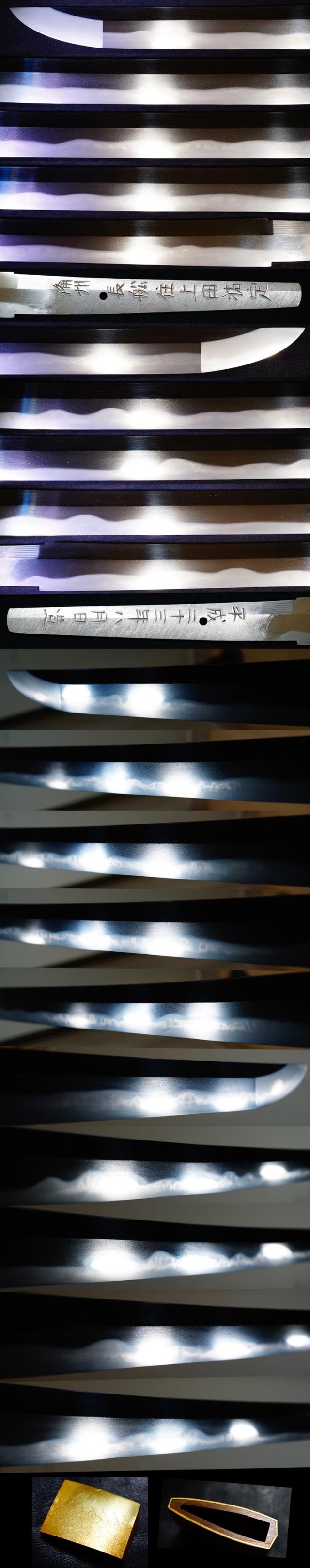銘文 『備州長船住上田祐定』 『平成二十三年八月日造』 種別 刀 長さ 73.2センチ 反り 1.2センチ 元幅 35ミリ 元重 7ミリ 先幅28ミリ 先重5.5ミリ 刀身重量 873グラム (すべて約です) 岡山県教育委員会