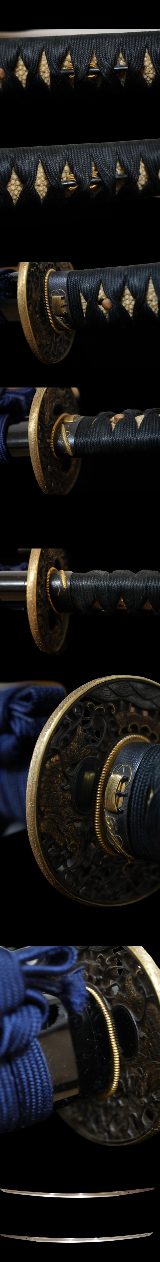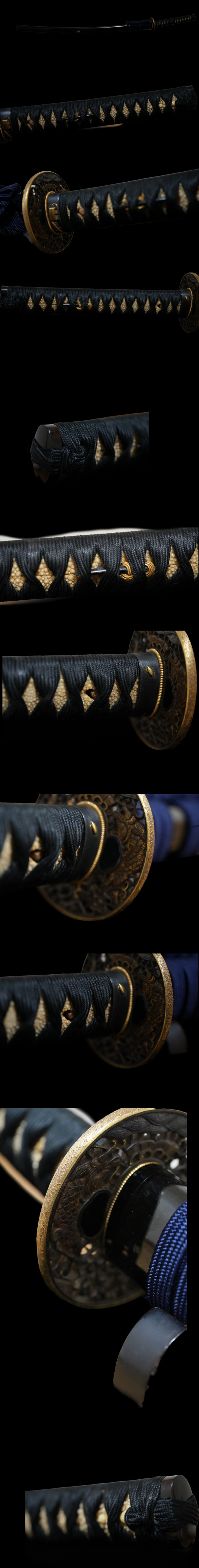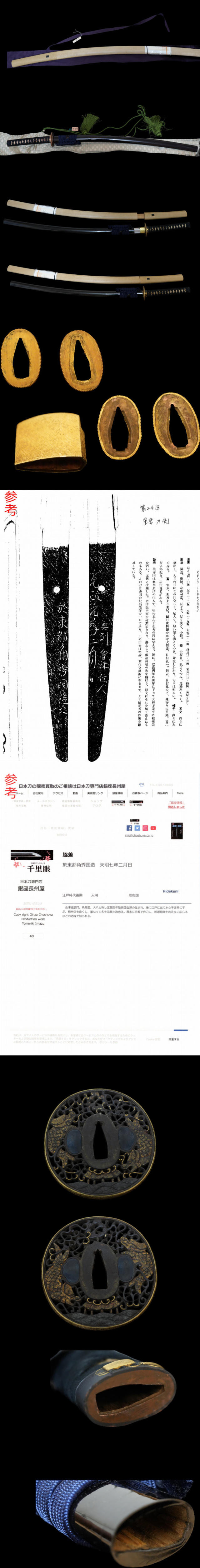 また、拵えもその時代の拵えと思われ、上品ながらも派手さが充分でおしゃれであり、金の着せてる部分も非常に太い。ハバキもその時代の太い金を着せているように見える。拵えだけでも相当高額な印象をうけます