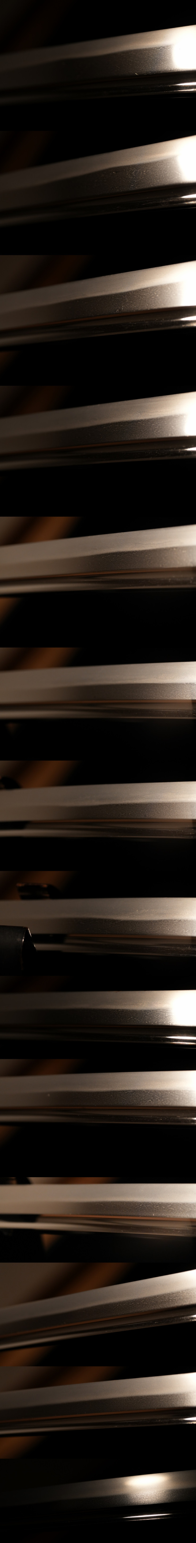 寛政4年に藩主の命によって相州伝を学びに元平に師事したといわれております。まさかのその時代の年季が入っており、茎仕立ては師水心子正秀そのものですが、出来は元平の最も得意とする相州伝を色濃く反映したまさに相州貞宗そのものの出来となっております。まさに正秀と元平が合作で良いとこどりで造ったような作品であり、まさに最高傑作の一振りといえると思います。一見すると温和な出来に見えますが直刃とは全く違った相州貞宗の極めのお手本のような出来です。