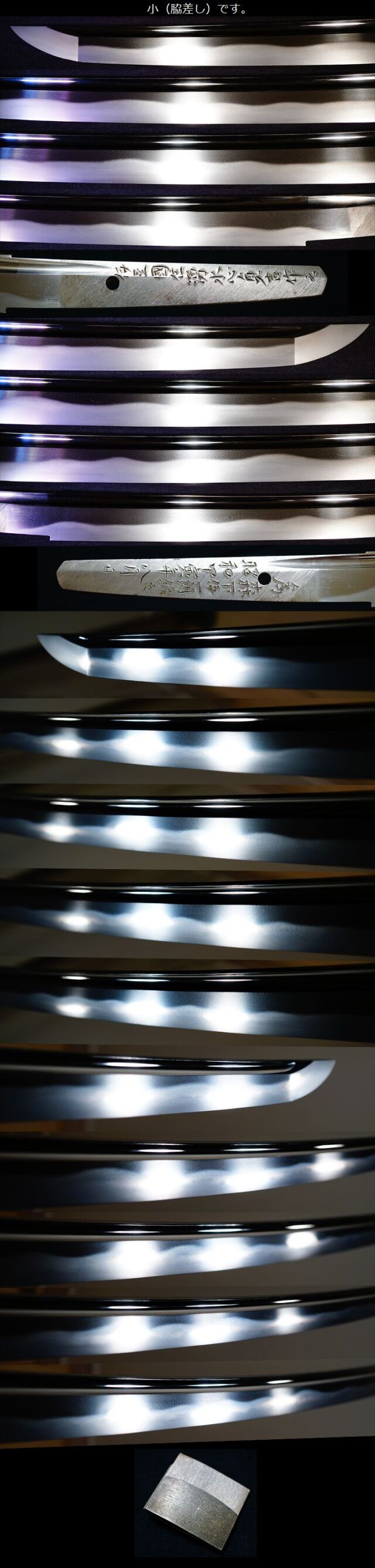 出来は大小共に群を抜いており、地景を交えた美しい最高の地肌であり、刃中には金筋が美しく入り、地刃ともに明るく冴えて覇気があり、沸え匂い深く現代刀の中でも一線を逸脱しており本工の技量を遺憾なく発揮された覇気に満ちた相州伝の名刀と云えます。