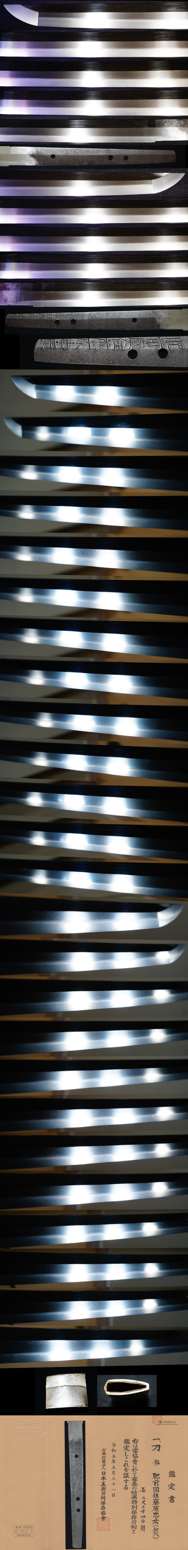 刃文は最も得意とした中直刃を焼き、地肌は小板目肌に地沸がよくつき、匂が深く、細かに金筋、砂流しがかかり、匂口が冴えるなど非常に出来が良く、肥前刀のお手本と云える初代忠吉ならではの作風でパーフェクトな出来栄えと云えます。